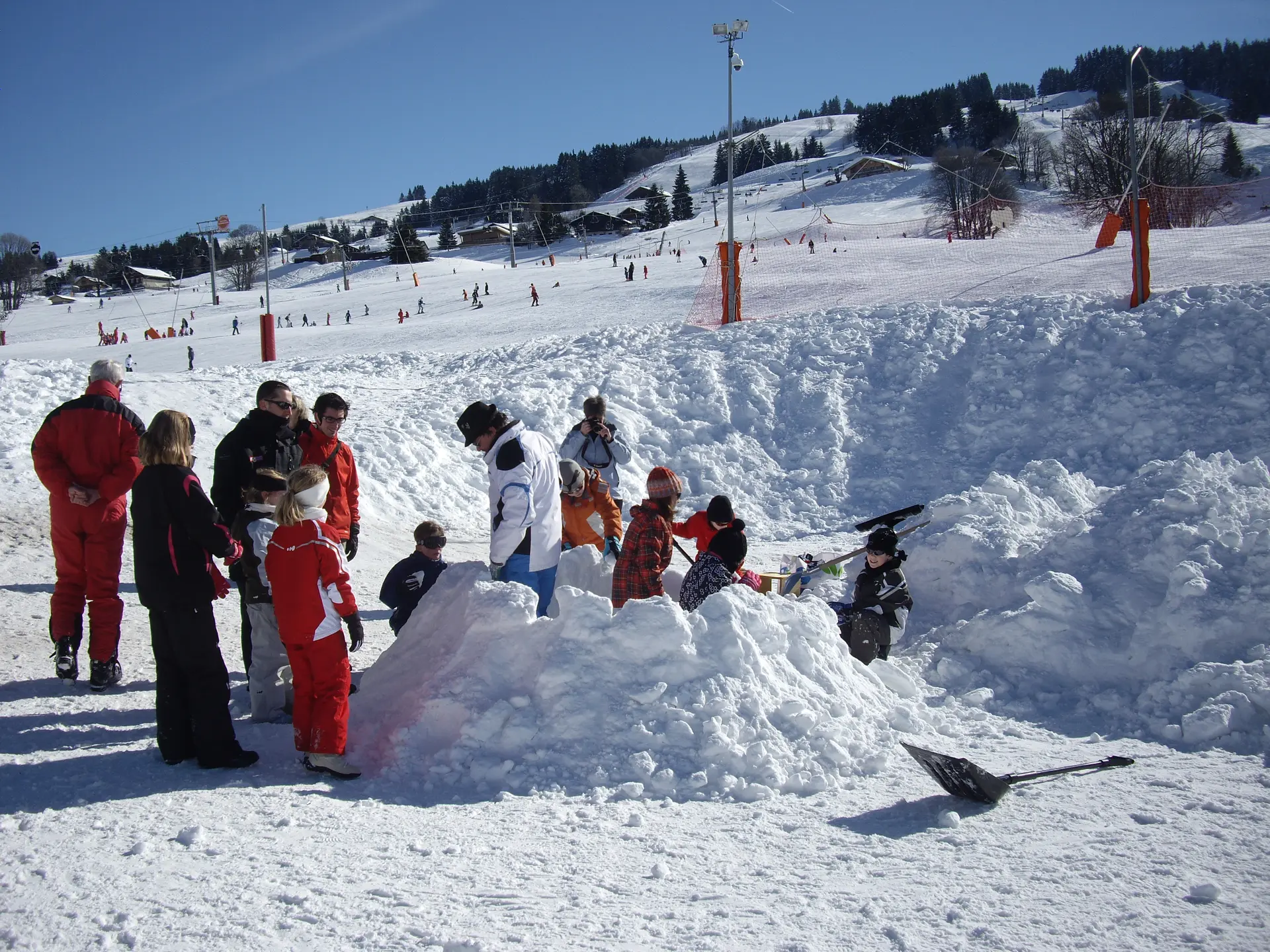 Die Kinder lernen, sich einen Iglu zu bauen. Snack und heiße Schokolade. Ab sechs Jahren.