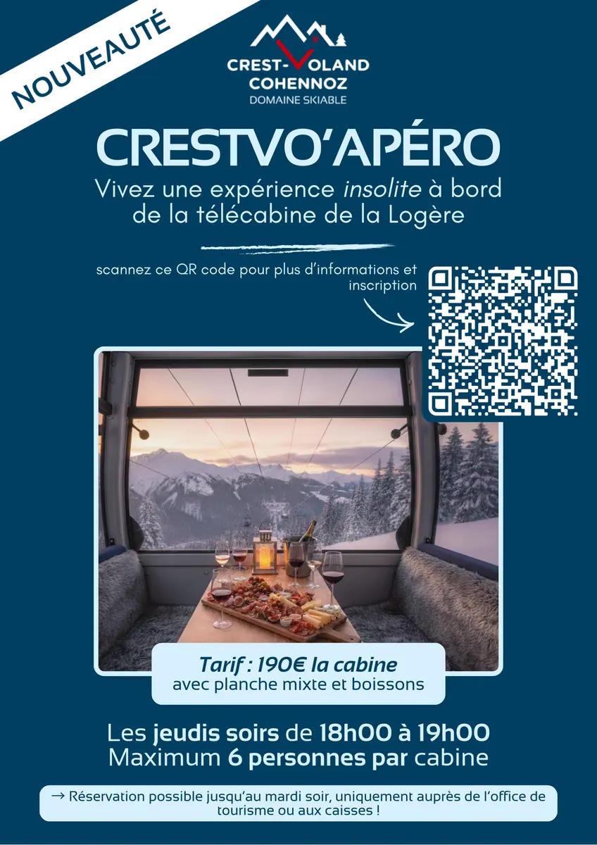 Crestvo'Apéro is THE unique activity offered by the Crest-Voland Cohennoz ski lifts! Enjoy your aperitif in a cabin reserved for the evening. A moment... suspended in time!