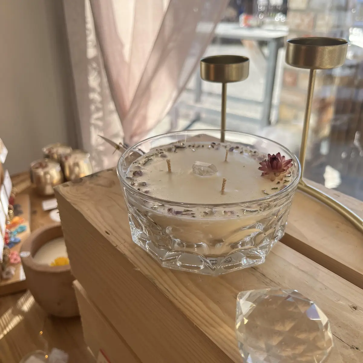 Boutique de bougies artisanales, ateliers créatifs et de bien-être, concept-store, artisanat d’ici & d’ailleurs, conseil en fleurs de Bach, pause gourmande.
