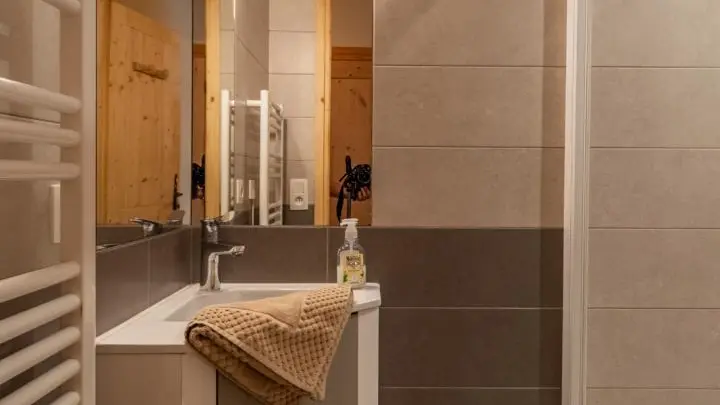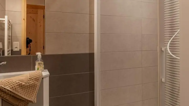Salle d'eau (lavabo, douche) et WC séparés.
