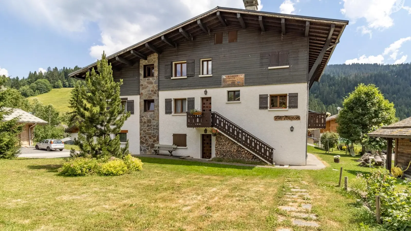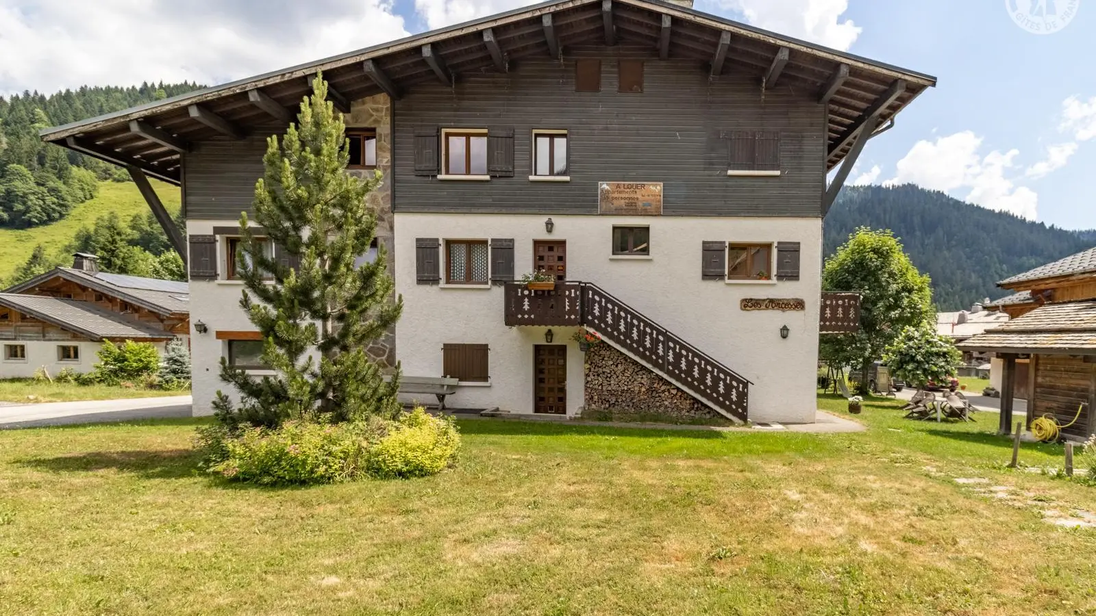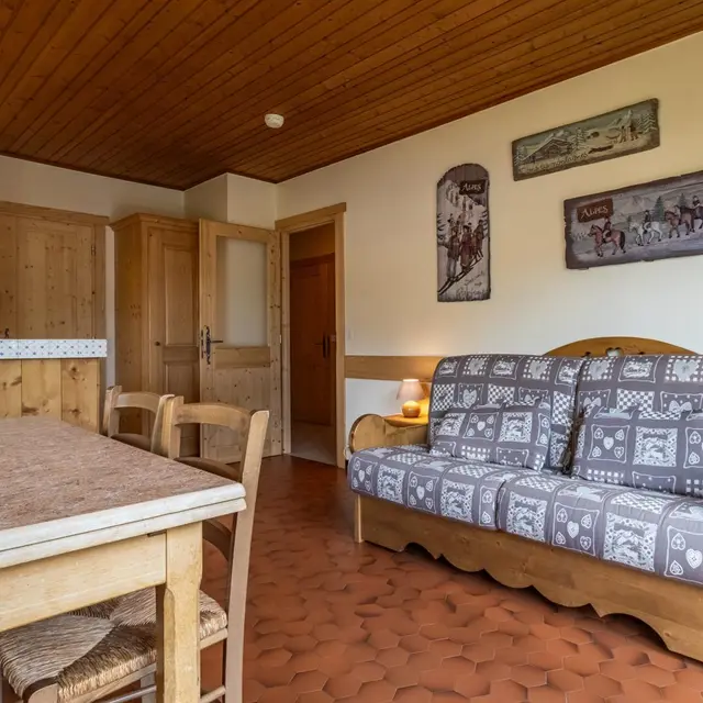 Appartement de 4 personnes au 2ème étage d'un chalet à 150m des pistes l'hiver, et au départ de nombreux sentiers pédestres et VTT l'été. Chalet près de l'arrêt de bus. Local à skis ou à vélos. L'appartement est orienté sud/sud-ouest avec balcon au sud.