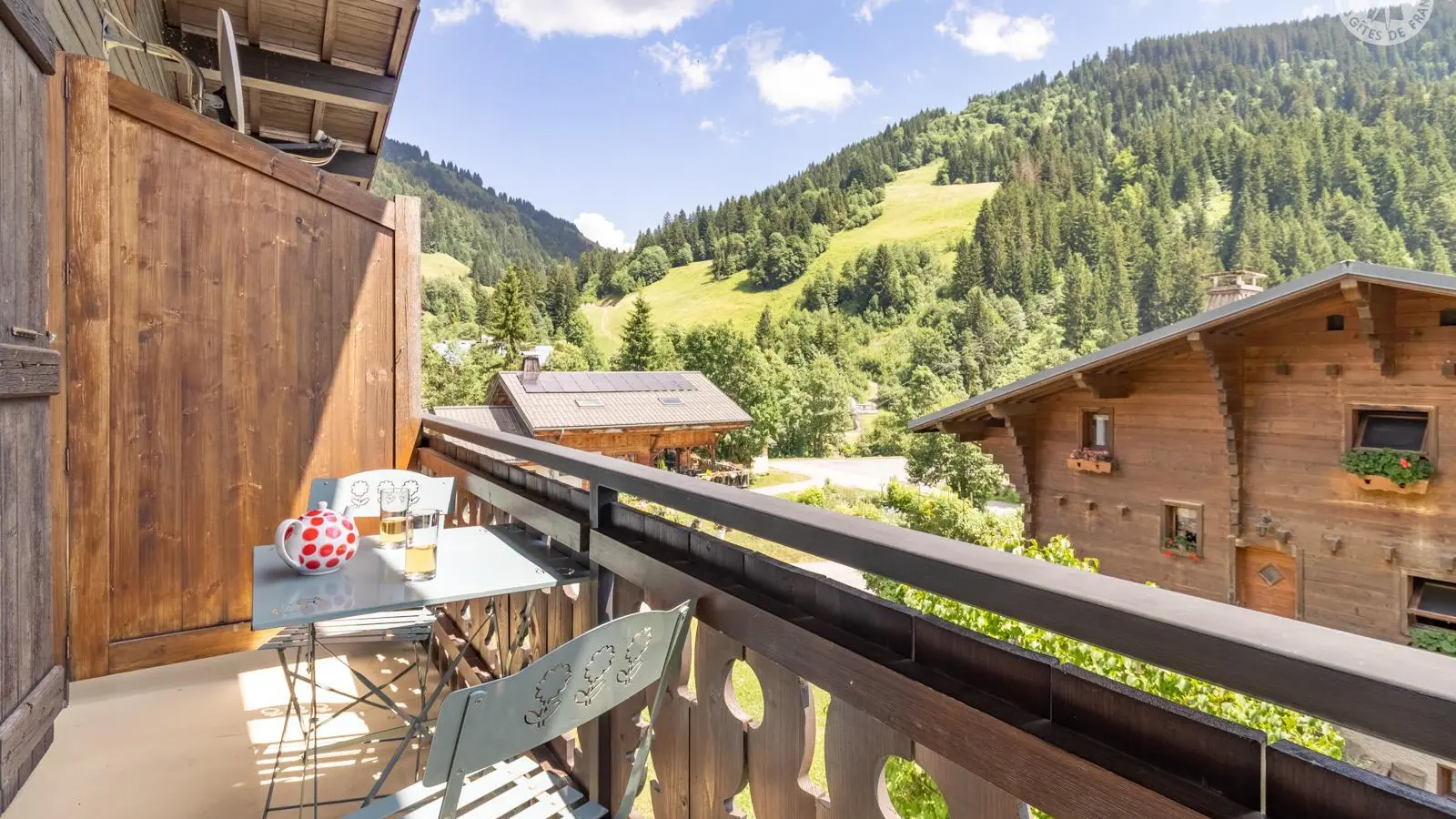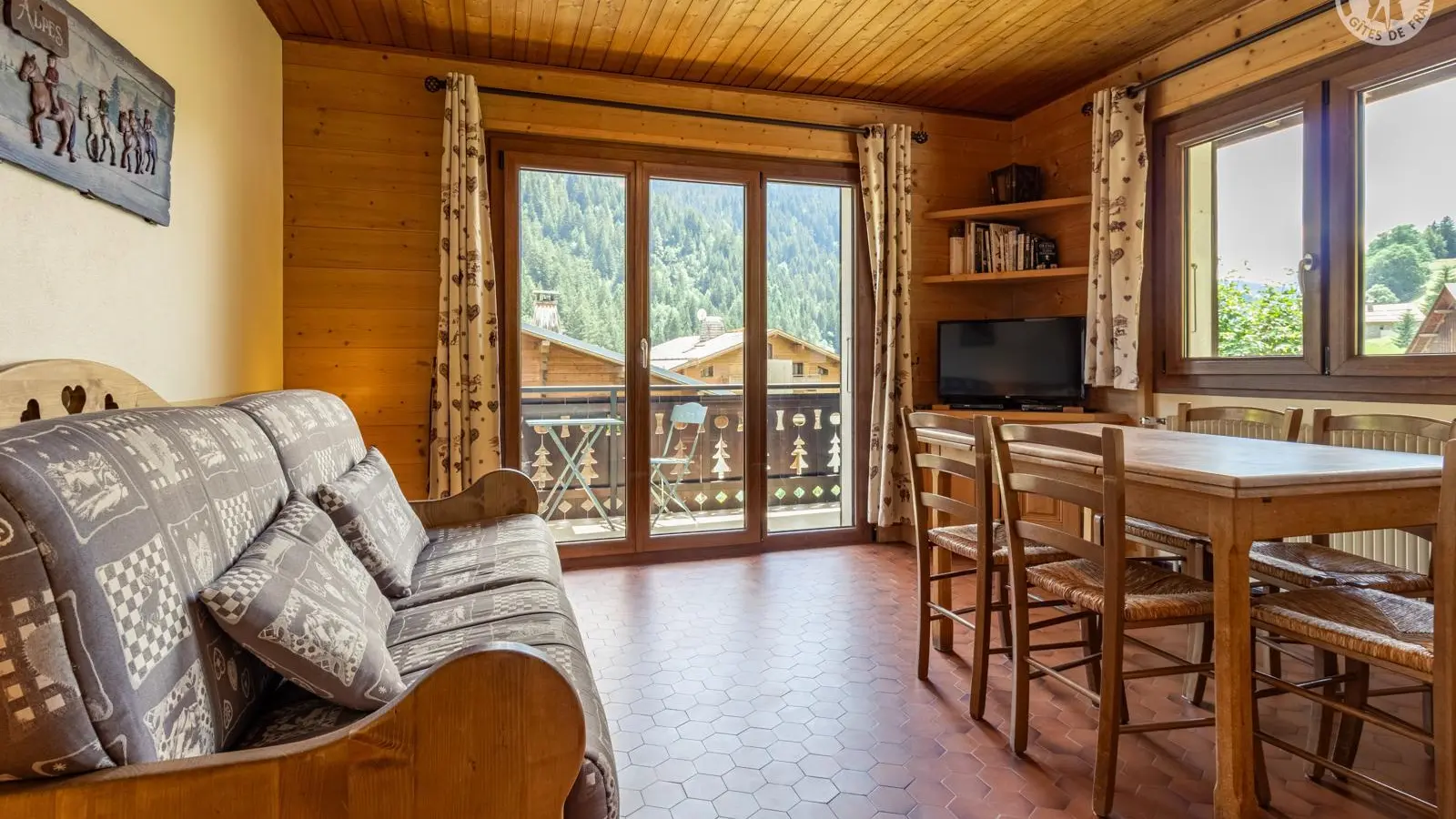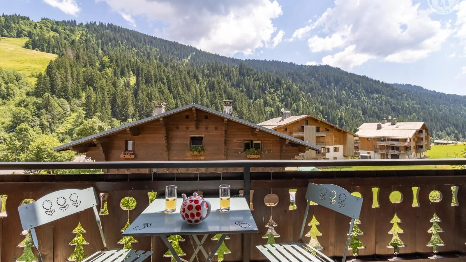 Appartement de 4 personnes au 2ème étage d'un chalet à 150m des pistes l'hiver, et au départ de nombreux sentiers pédestres et VTT l'été. Chalet près de l'arrêt de bus. Local à skis ou à vélos. L'appartement est orienté sud/sud-ouest avec balcon au sud.