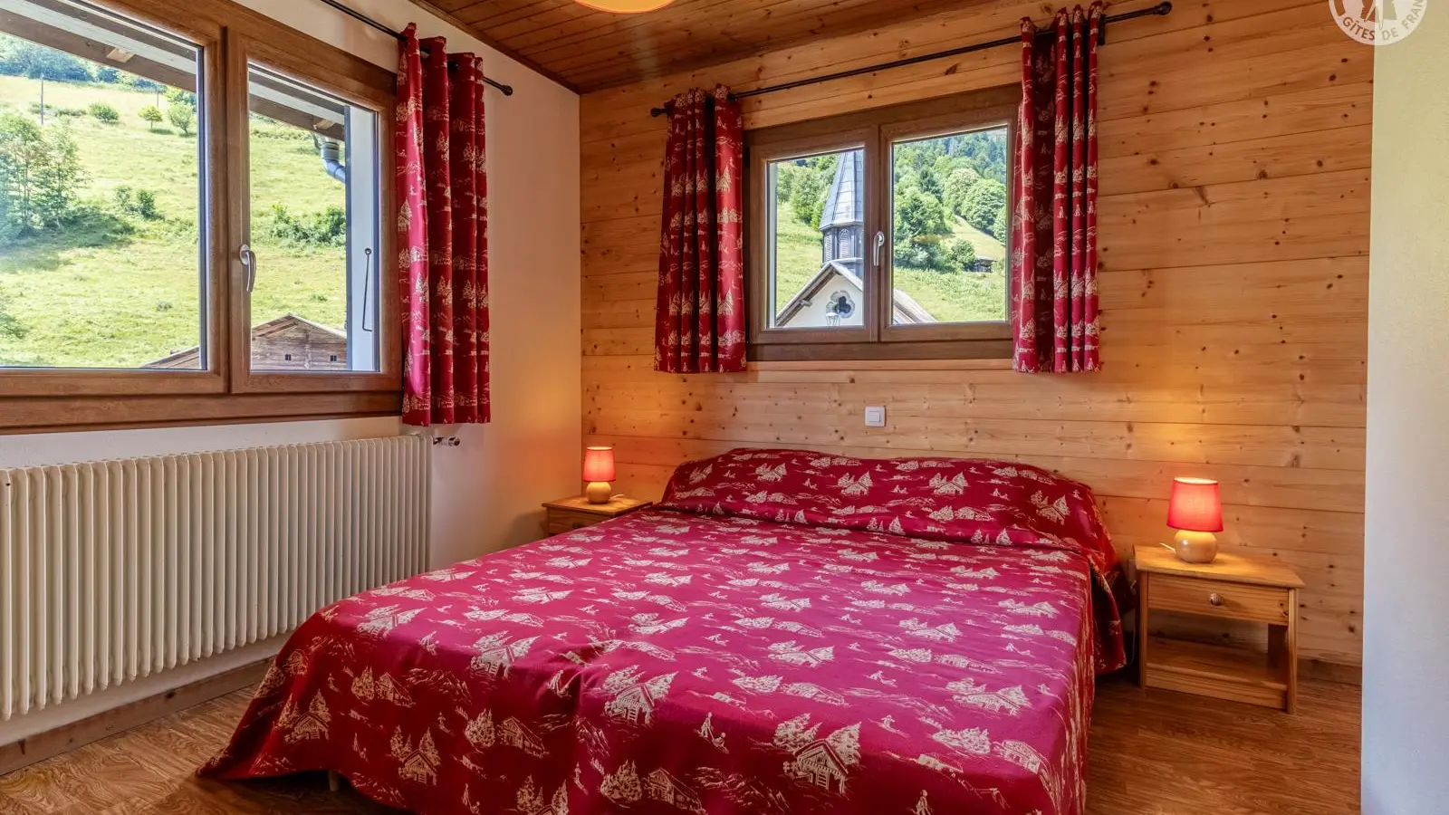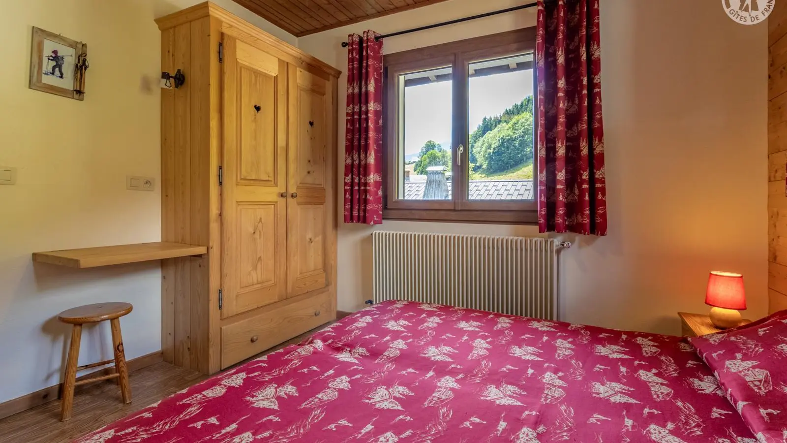 La chambre : 2 lits jumeaux de 90 cm (jumelables ou pas) avec oreillers et traversins.