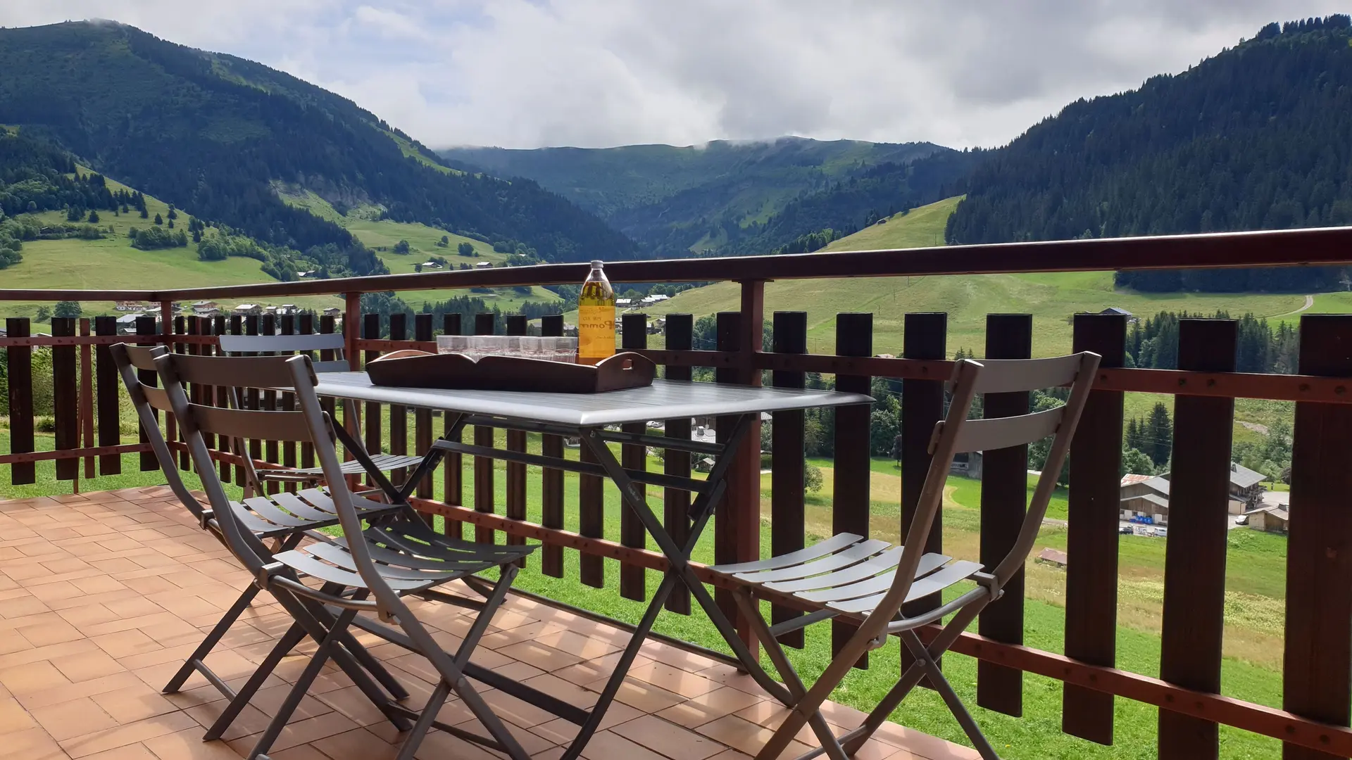 Parking privé, balcon et terrasse : très bonne exposition au soleil, mobilier de jardin, barbecue, balançoires, jardin, local skis. Départ et retour : skis aux pieds depuis le chalet.