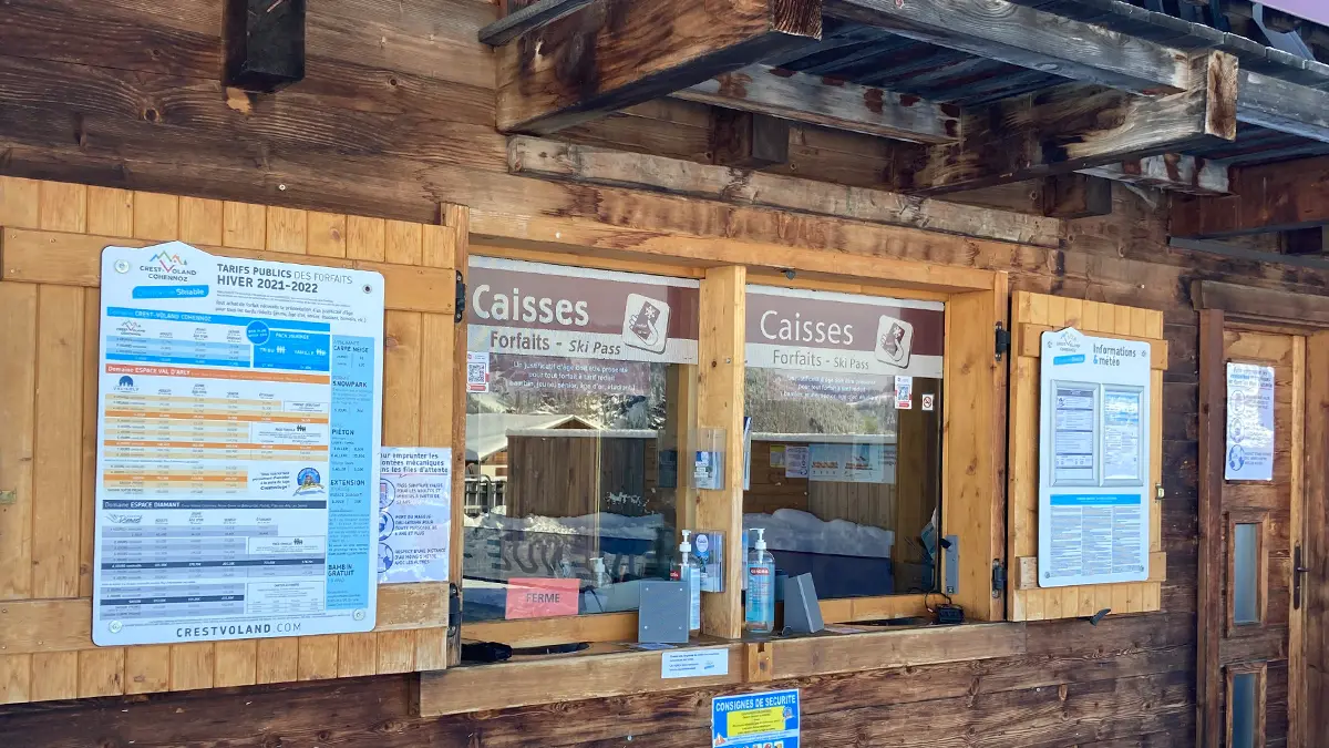 Achat des forfaits de ski, achat des remontées piétonnes, achat des titres pour la Crestvoluge, point d'informations.